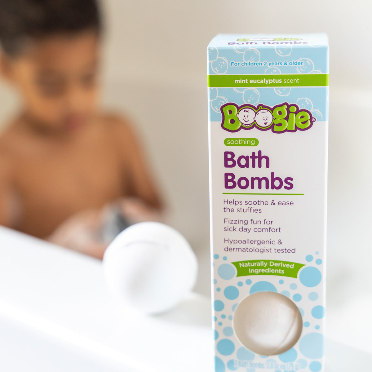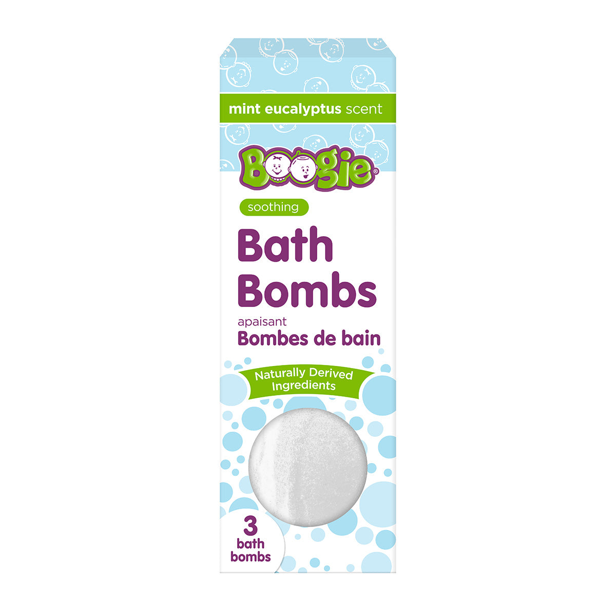 Make bathtime more fun with Boogie® Bath Bombs for kids. Boogie® Bath Bombs are made with aloe and essential oils to help comfort and calm little ones. These bath bombs are safe for young kids and will dissolve cleanly. What's more, these fun, fizzing bombs are made without parabens and phthalates, to keep your baby safe! Stuffed up? Help soothe and ease the stuffies with our Mint Eucalyptus scent.
