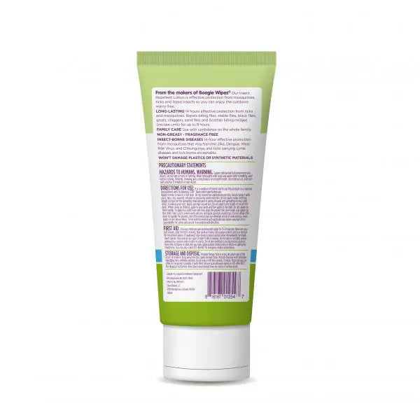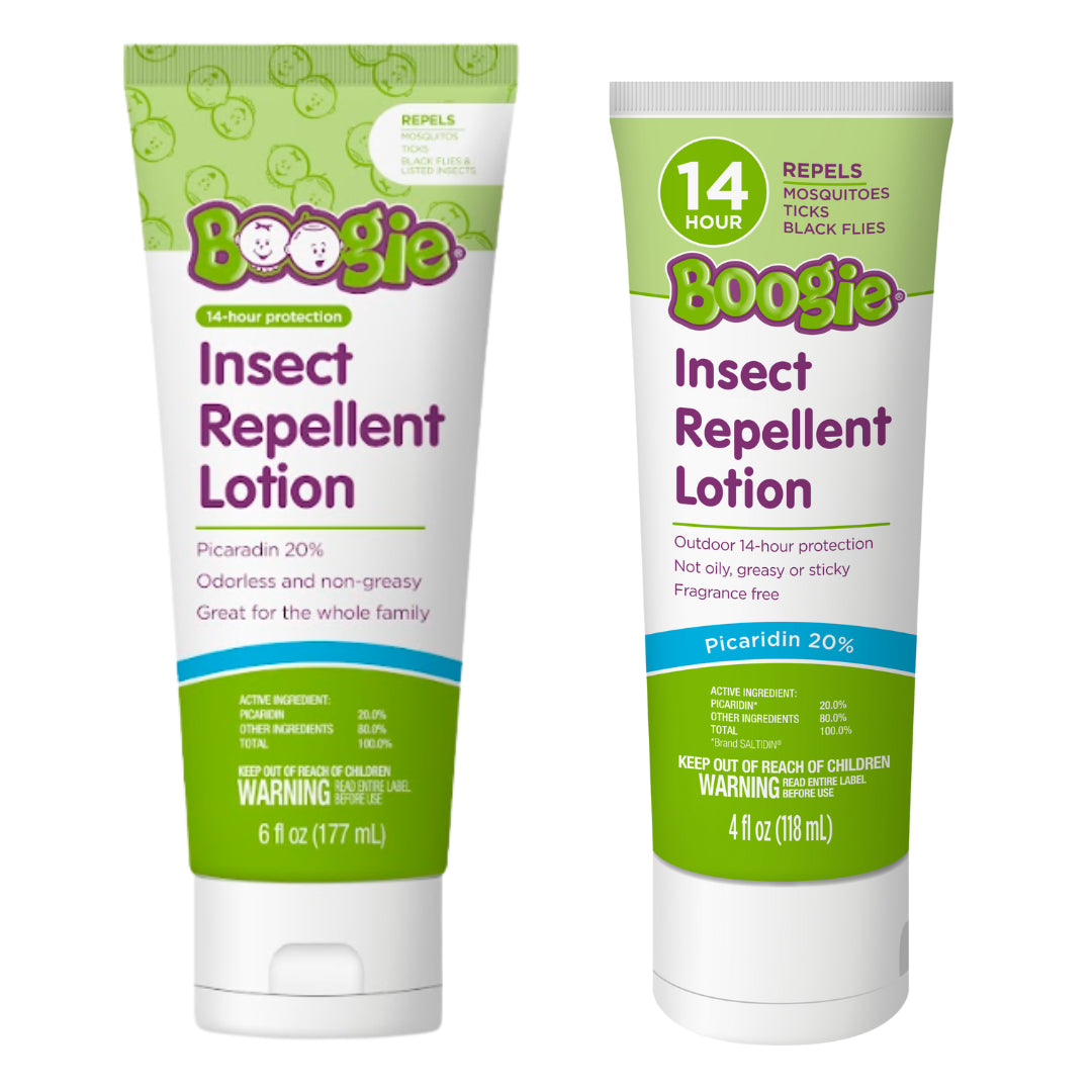 Boogie® Insect Repellent Lotion offers broad-spectrum protection for the whole family and effectively repels mosquitoes and ticks for up to 14 hours. It contains 20% picaridin, and has an odorless, non-greasy feel that leaves skin feeling soothed and moisturized.