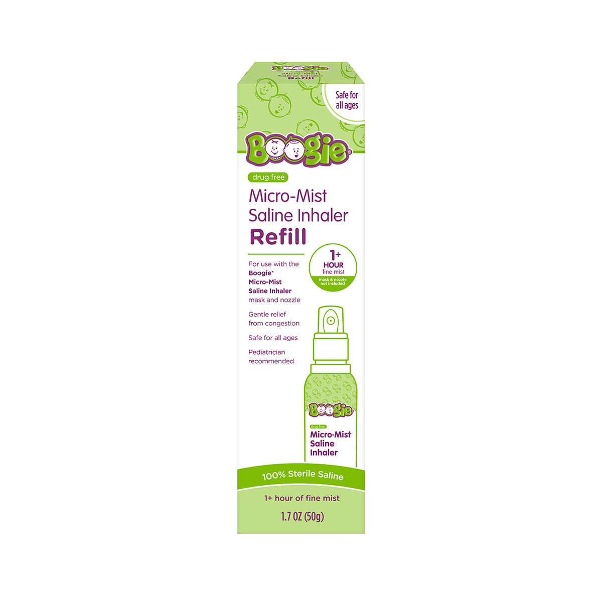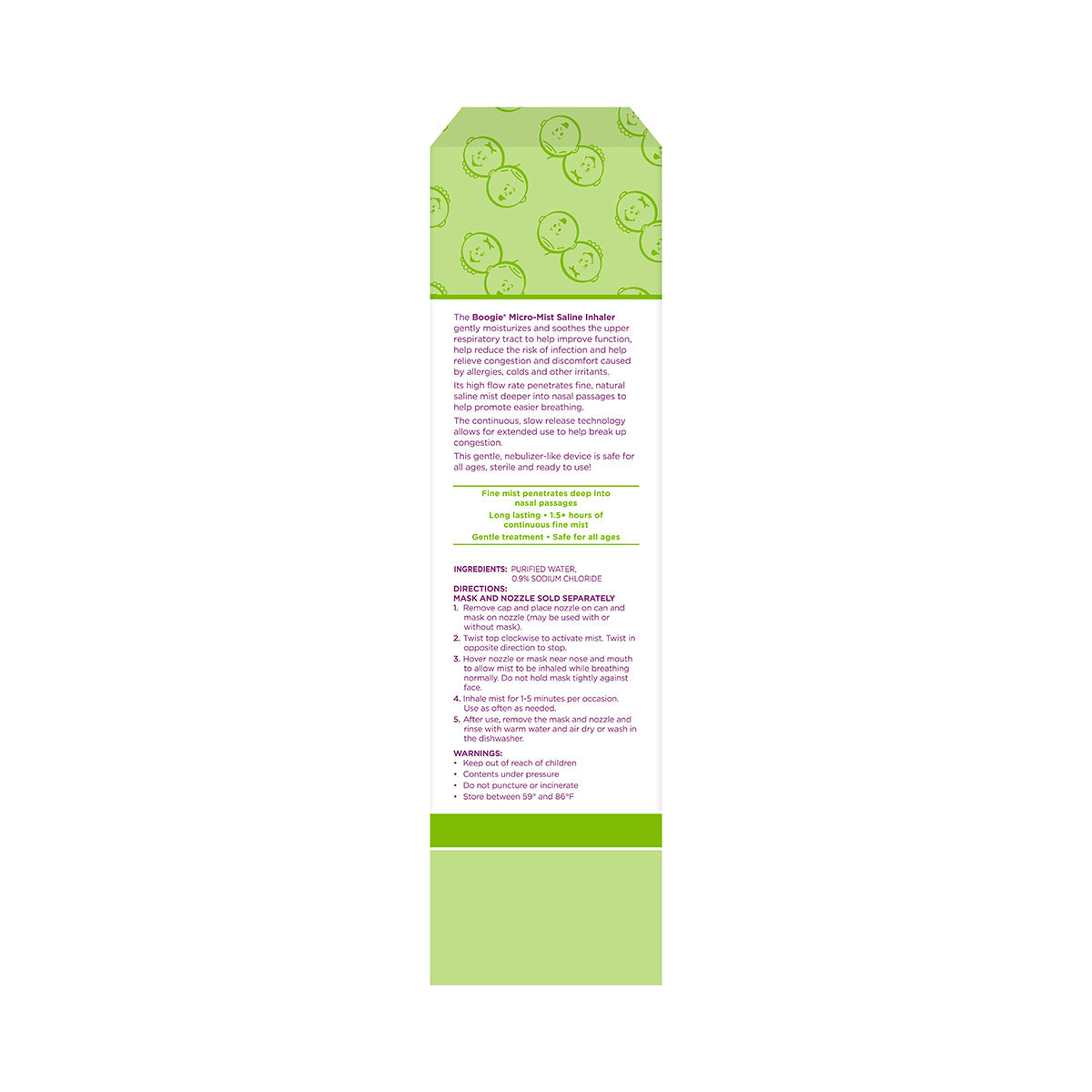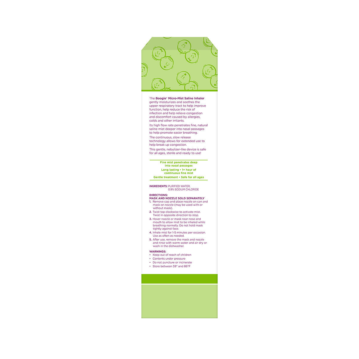 The Boogie® Micro-Mist Saline Inhaler gently moisturizes and soothes the upper respiratory tract to help:
