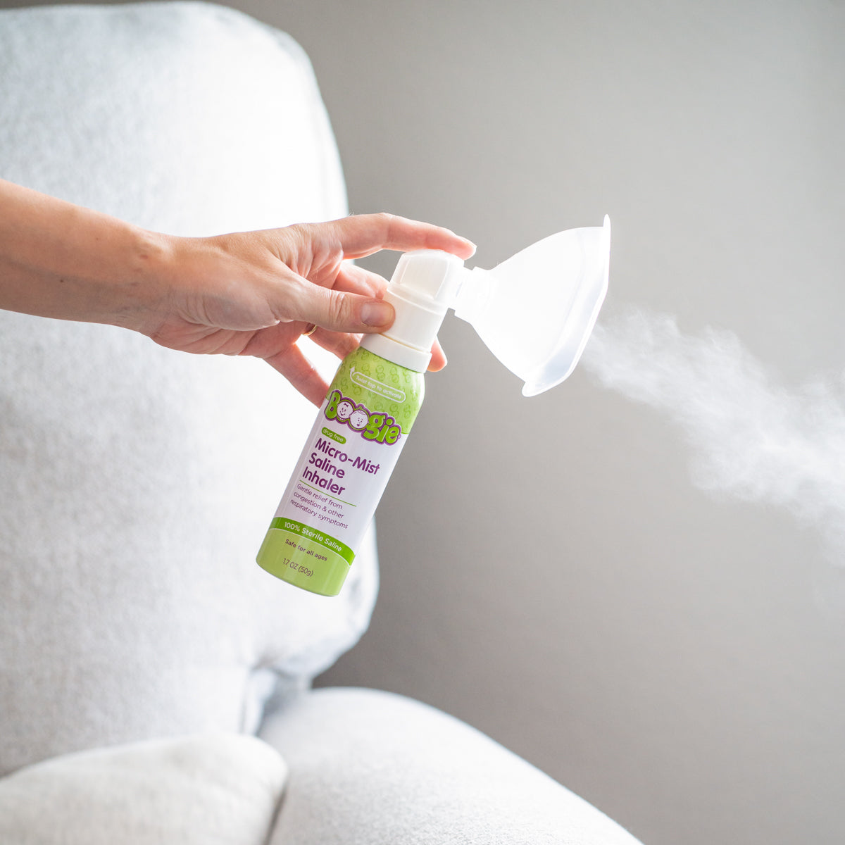 The Boogie® Micro-Mist Saline Inhaler gently moisturizes and soothes the upper respiratory tract to help: