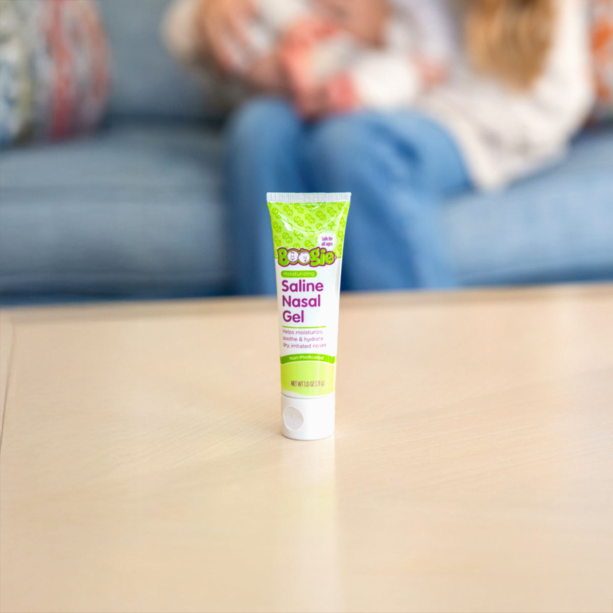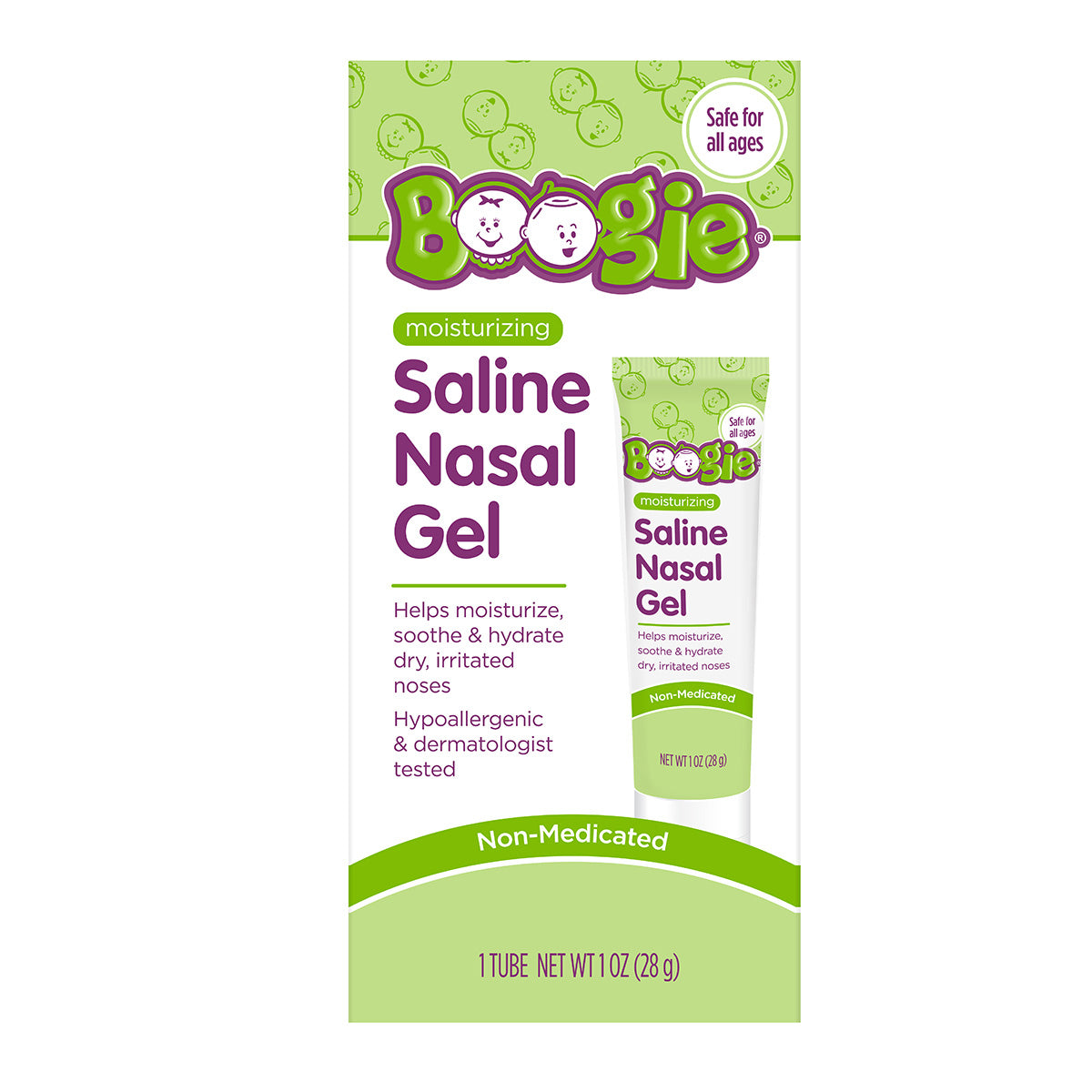 Boogie® Saline Nasal Gel is made with isotonic saline, aloe and botanical extracts to help moisturize, soothe and hydrate dry, irritated noses and nasal passages and relieve discomfort caused by colds, allergies, nosebleeds and dry nasal passages. It’s hypoallergenic, dermatologist tested and made with mindful ingredients for sensitive skin. It is gentle enough to be used on all ages as often as needed with no added fragrances.